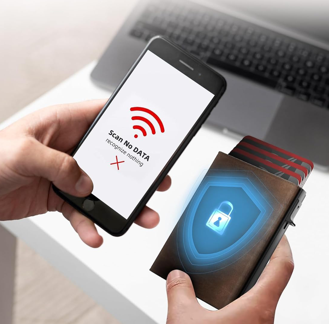 Protección de la privacidad personal, la tecnología de aluminio avanzada protege sus tarjetas de comunicaciones inalámbricas no deseadas.